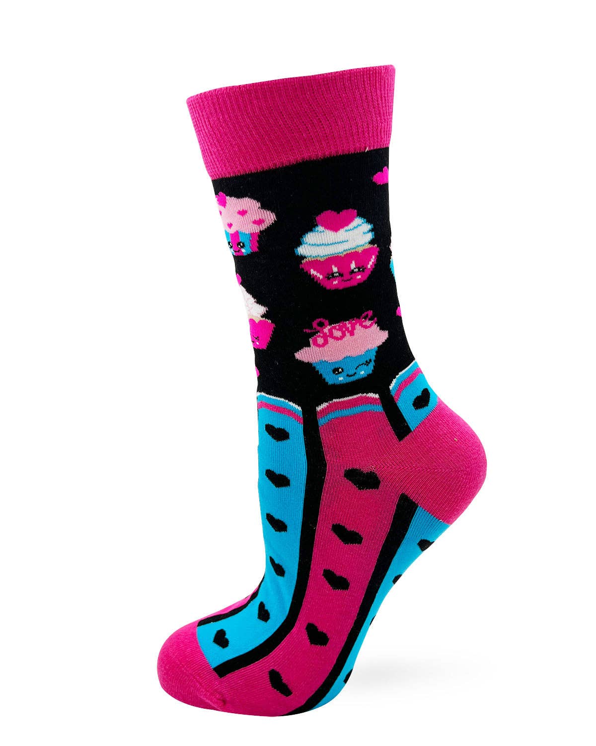 Sassy Women's Crew Socks featuring cupcakes and saying "Just Baked You Some Shut the Fucupcakes" Stylish and comfortable! Fits ladies' shoe size 5 to 10. 80% Cotton, 15% Nylon, 5% Spandex. Easy Care - Machine Wash.
